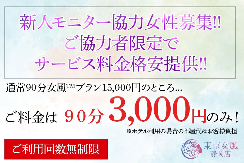 最も多くご予約いただく基本プラン。甘美な官能の世界をお楽しみいただくプラン。お客様同意の範囲で挿入以外のHを全て行います。詳しくはご利用案内の女風™プランの紹介記事『女風™プランとは?基本プレイを詳しく紹介!』をご覧ください。